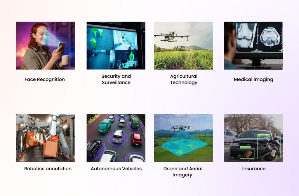 In the insurance industry, image annotation supports damage assessment and claim automation. Annotated images help AI models evaluate vehicle damage, property loss, and risk factors. This speeds up claim processing and reduces manual inspection costs. Accurate annotation improves consistency and fraud detection. Insurance companies use these systems to enhance customer experience and operational efficiency.