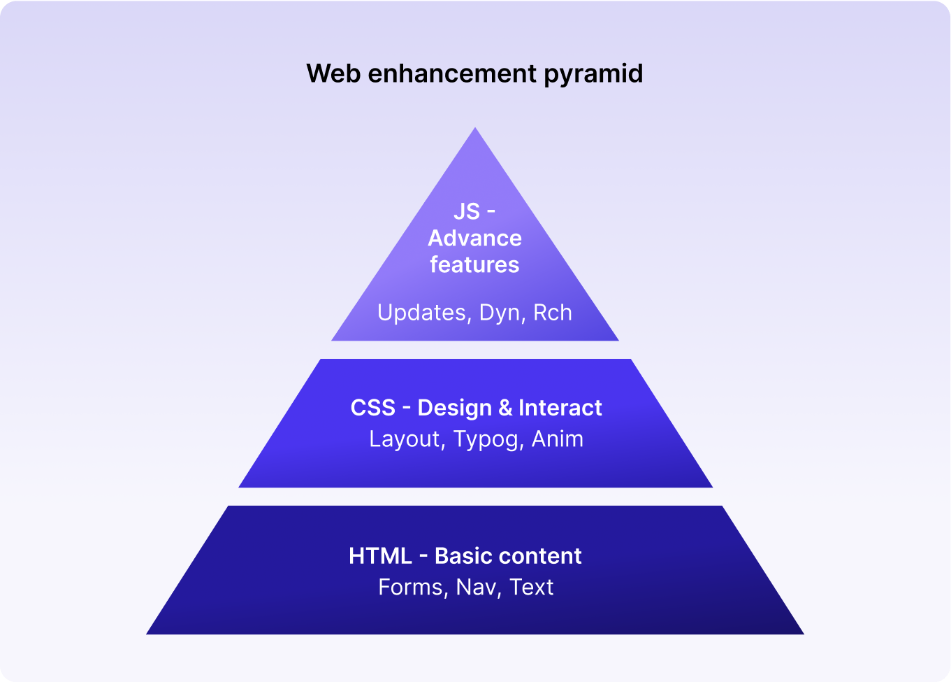 Progressive enhancement isn’t just a technical strategy. It’s a design philosophy that ensures core functionality works for everyone while providing richer experiences for people with capable devices and faster connections.